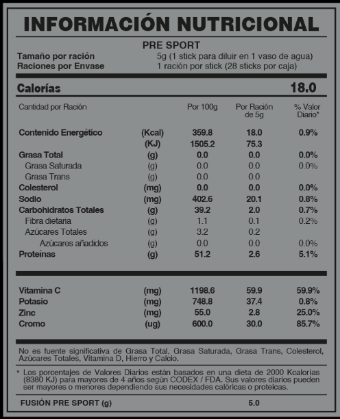 Este producto está diseñado como bebida energizante y potenciadora del rendimiento físico y mental antes del ejercicio.