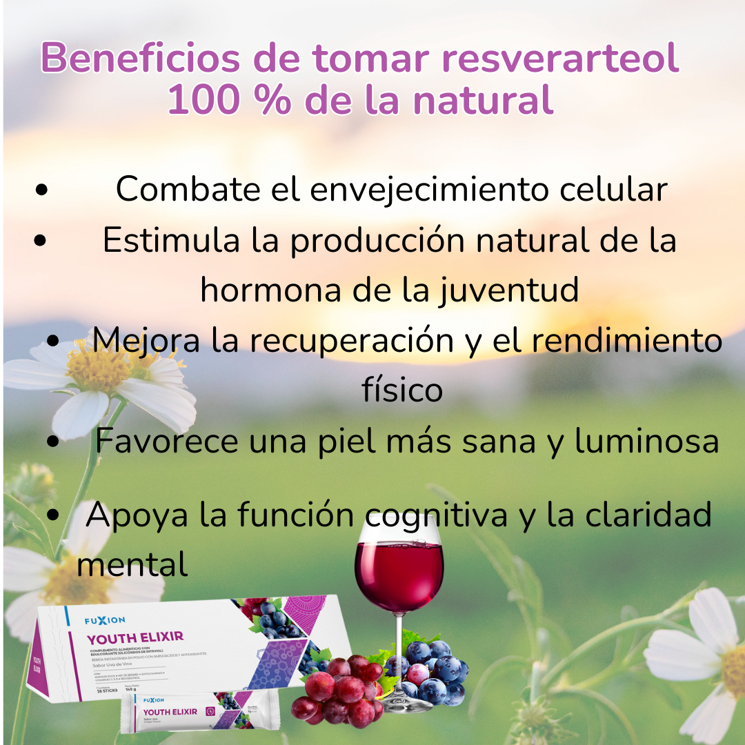 Gracias al poder antioxidante del resveratrol y las súper frutas, ayuda a neutralizar los radicales libres que dañan las células.